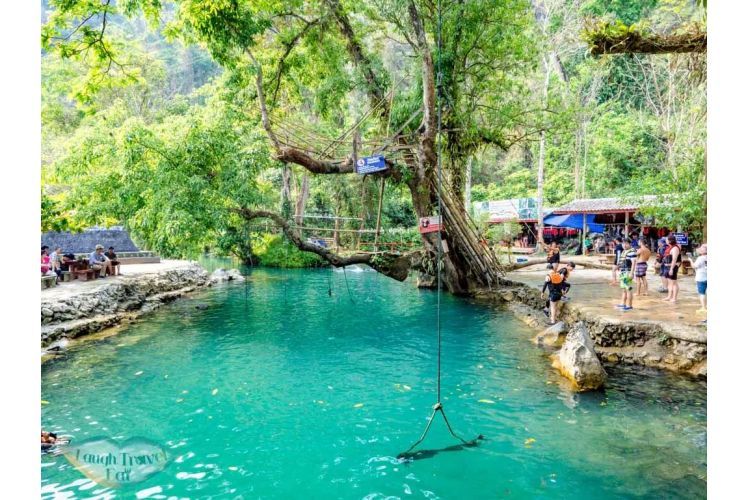 早餐后,前往探秘【坦普坎溶洞】(约60分钟)19 世纪初它曾是抵御云南穆斯林攻击的地堡,通过石灰岩壁开凿的豁口可以欣赏到河谷绚丽的景色和远处的万荣小镇。溶洞探险可能没有中国开发的那么精致,但一定可以让你体验最为原生态的景色。【蓝色泻湖】(约60分钟)从溶洞流出的水令泻湖耀眼,人们争相到此,跳入蓝色的湖水中享受清凉,有小桂林之称,属于喀斯特地貌,‘蓝色泻湖’就在坦普坎溶洞口处,‘蓝色泻湖’的水都是从坦普坎溶洞里流出来的。