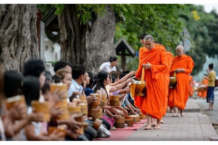 此日早起 (约早上 04:50 ) 【世界非物质文化遗产—布施】(一般是 05:30 开始)于晨雾中参加琅勃拉邦著名的仪式,体验老挝人民对于宗教的虔诚与执着(需自费清晨布施必备糯米饭+点心)。