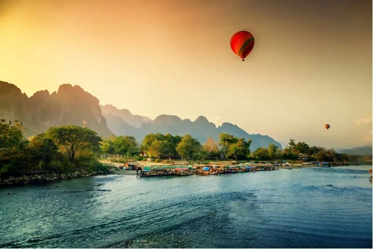 第2天万象--万荣,凯旋门--塔銮寺--南松河长尾船-蓝色泻湖--坦普坎溶洞--打卡热气球基地
