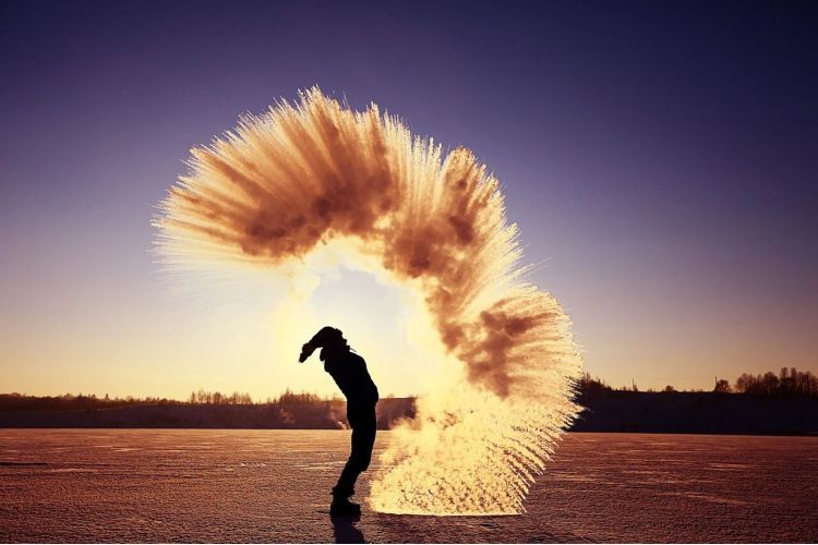 ★绚烂泼水成冰:当水蒸气遇冷迅速凝华成冰晶,一瞬间如炸开一朵烟花,邂逅 95℃的“雪色浪漫”;