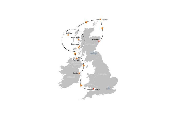 •踏上原始海岛的奇幻旅程:从朴茨茅斯登船起航,沿途探索英国与苏格兰群岛的神秘海域,包括锡利群岛、赫布里底群岛、天空岛及外赫布里底群岛,深入极具野性与原始风貌的海岛世界。