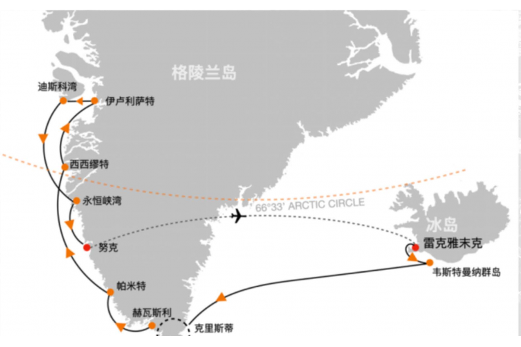 【机票】国际段往返经济舱机票,努克/雷克雅未克单程包机经济舱;