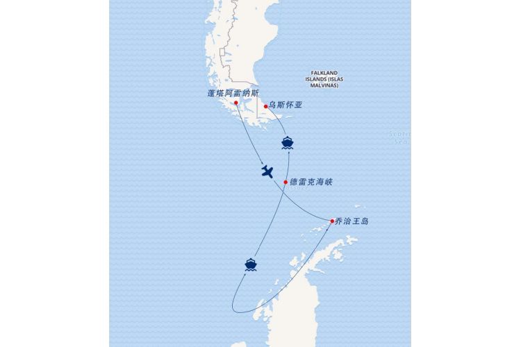 【去程飞过德雷克,返程船回德雷克】去程:乘机从智利出发,飞越德雷克海峡抵达南极乔治王岛,免除长达2天的晕船苦恼,省时省力,用最饱满的精神状态拥抱南极;回程:乘船穿越德雷克海峡抵达阿根廷,亲身体验一次"魔鬼西风带"的魅力,让一生一次的南极之旅不留遗憾!