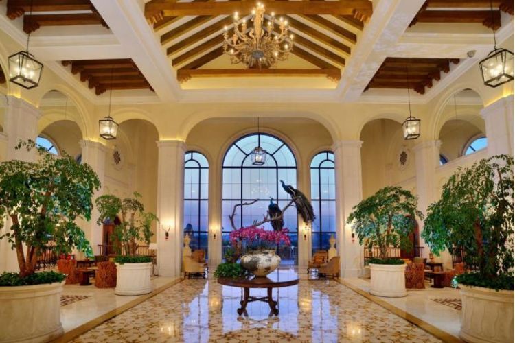 【美林湖温泉大酒店】按白金五星标准建造的,以“意大利山城”为主题打造,依山势而建,层叠错落有致,环360风景,南加州建筑风格尽显异域风情魅力。