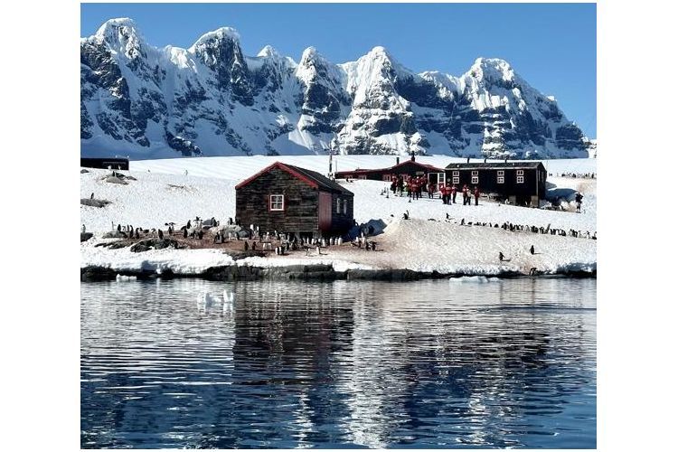 布朗站 Brown Station,阿根廷的夏季科学研究站,色彩鲜艳的科研建筑在雪白背景下格外醒目。游客可沿山坡步道向上登高,俯瞰天堂湾的完美全景:平静海面、浮冰、群山与企鹅群落交织成如画景致,是摄影师最爱的角度之一。