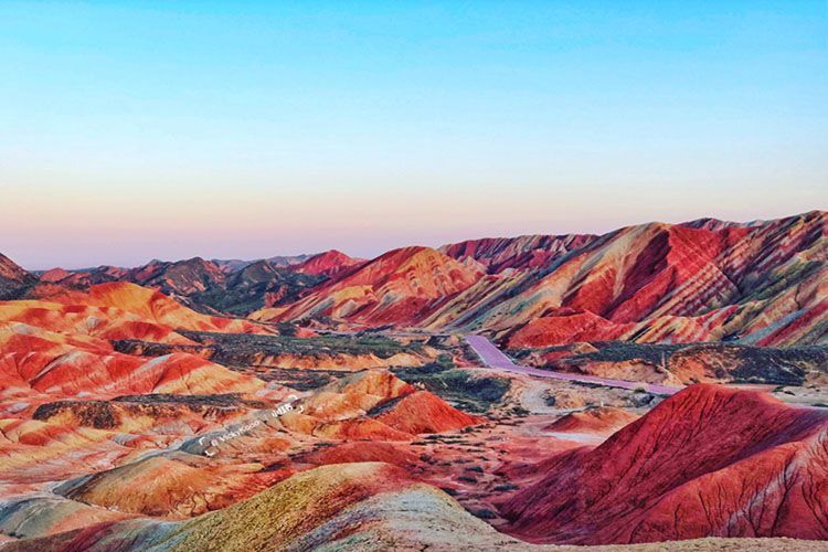 早餐后,出发前往张掖,游览【七彩丹霞】(含门票+区间车,游览约 2 小时),是国内唯一的丹霞地貌与彩色丘陵景观复合区,是中国丹霞地貌发育最大最好、地貌造型最丰富的地区之一,是中国彩色丹霞的典型代表,具有很高的科考和旅游观赏价值。丹霞地貌由形成于距今 1.35 亿年至 6500 万年前的白垩纪“红层”,在湖相沉积、构造运动、流水与风力的侵蚀等内外力的作用下,形成了中国独具特色的彩色丘陵地貌。2005 年,七彩丹霞被选为"中国最美的七大丹霞"之一,2015 年被全国多家知名网站评选为全球 25 个梦幻旅行地。晚餐后入住酒店休息。
