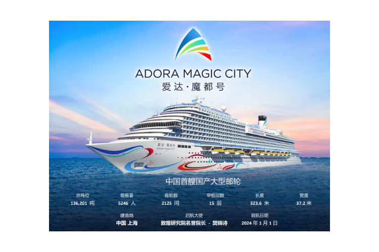 爱达·魔都号 (Adora Magic City)-中国首艘国产大型邮轮,于2024年1月1日以上海为母港开启首航。