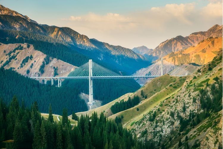 16:00-17:00 乘车辆前往【果子沟大桥悬崖机位】,果子沟大桥是新疆第一座斜拉桥,也是果子沟峡谷的标志性景观,大桥如巨龙般横跨峡谷,与周边的雪山、森林、草原融为一体,尽显工程与自然的和谐之美。我们将前往网红悬崖机位,站在巨型裸岩之上,以雪山为背景、云端为底色,俯瞰大桥全貌,随手就能拍出 “脚下是云端,身后是壮阔” 的震撼画面。若天气条件适宜,领队还将用无人机航拍,记录下大桥与峡谷的恢弘全景;