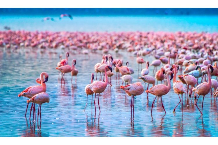 推荐自选项目:埃尔门泰塔湖探秘野生鸟类,偶遇火烈鸟群。这是一个鲜为人知的观鸟地,大量繁殖的浮游生物和湿热的环境,让浅蓝色的湖水被火烈鸟形成的“粉色的海岸线”所覆盖。在这里还可以看到斑马、长颈鹿、狮子、河马等野生动物,湖岸边也有一些稀有濒危物种如罗斯柴尔德长颈鹿、黑犀牛和非洲豹等。(温馨提示:火烈鸟是一种随心所欲的游牧者,哪里有食物,就往哪里迁徙,如果下大雨,火烈鸟的数量会急剧减少,旅行社无法保证一定能观看得到。)