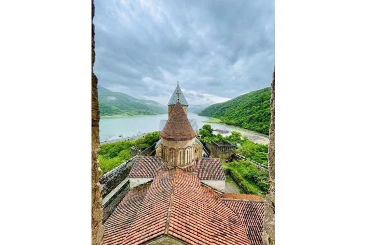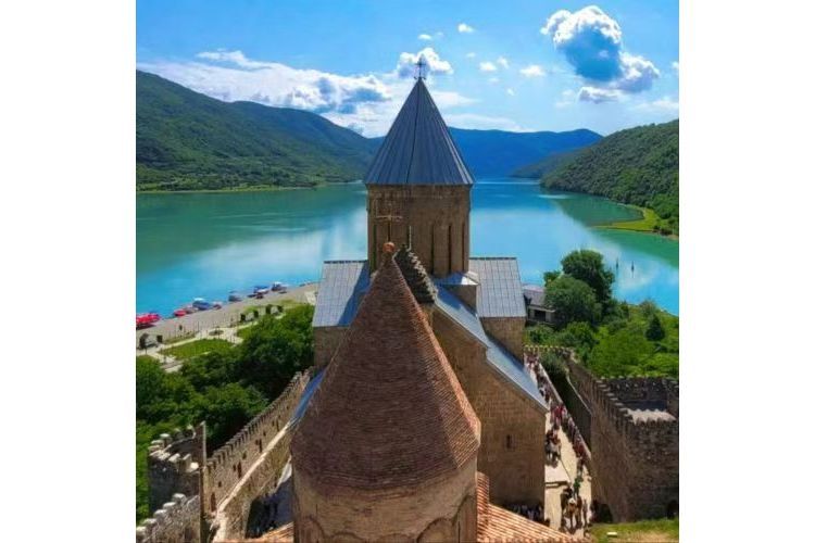 乘车前往前往《孤独星球》封面之地-安南努利城堡(Ananuri),城堡坐落在阿拉格维湖的半山之上,绿宝石般的湖水和蔚蓝的天空,衬托着典雅秀美的古堡,真如同走在童话之中。它曾经是私人军事城堡,它是 13 世纪 Aragvi 封建王朝时领主的城堡,也是军事要塞。18 世纪 Aragvi 王朝被推翻,这里随之也被之后的统治者占领,直到 19 世纪依然是城堡要塞。(游览约 20 分钟),此城堡由当时的乔治亚领主建于 16 世紀,目前依旧保持得相当完整。