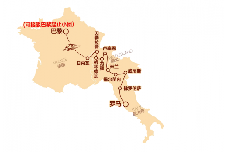 中旅1号 法意瑞深度纵贯 9 日之旅罗马起巴黎止 | 逢周六发团 | 1 人铁发 | 1-6 人拼小团,可独立成团
