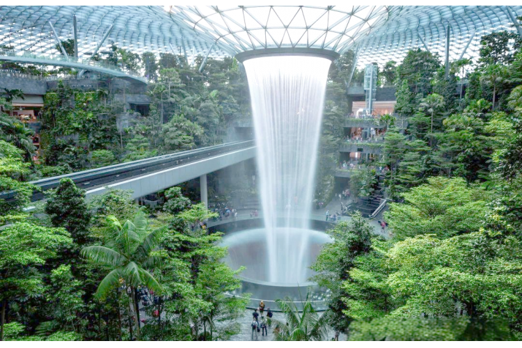 【打卡星耀樟宜】(自行游览,不含付费区域门票)星耀的核心景点, 目前全世界最高的室内瀑布,滂湃 的 40 米的高空倾泻而下,从建筑的顶端到地底下 2 楼,像锅炉一样的漩涡,时时激起然然云雾,还 不时地变化多端。无论日或夜,都是不可思议的美!(备注:如遇维修不对外开放则取消此项,无费用退还)