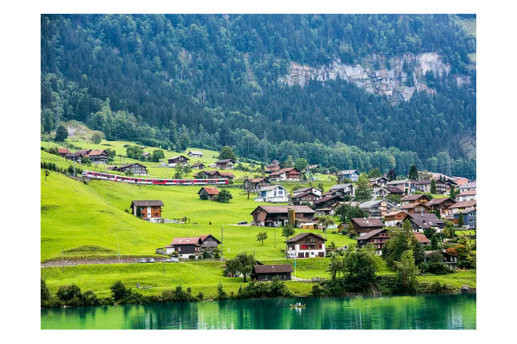 今日行程高亮:谁说童话里都是骗人的?瑞士的龙疆小镇就是现实版的童话世界!蓝绿色的湖泊、连绵的雪山、点缀山坡的小木屋……每一帧都美得像明信片。